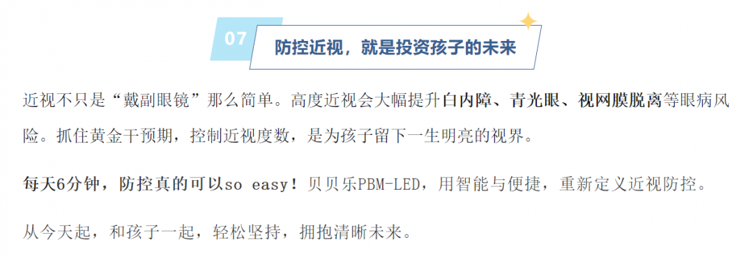 今天,视景医疗为您带来革命性的近视管理方案——贝贝乐PBM-LED近视治疗仪,每天只需6分钟,让近视防控变得像刷牙一样简单!